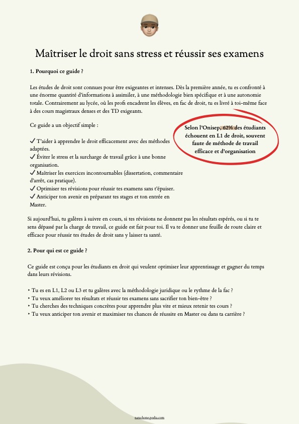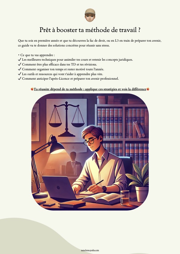 Ce guide te montre comment optimiser tes révisions et maximiser tes chances de réussite en Licence de droit. Travaille intelligemment, applique les bonnes stratégies et décroche tes examens avec méthode et confiance.